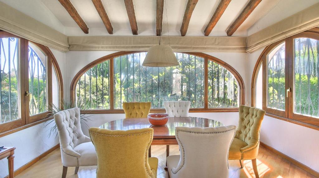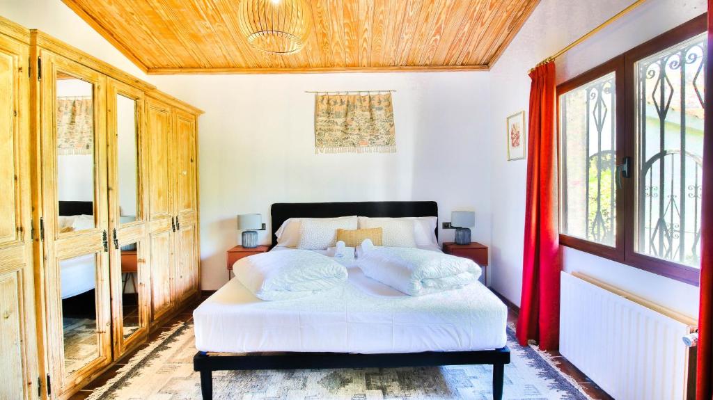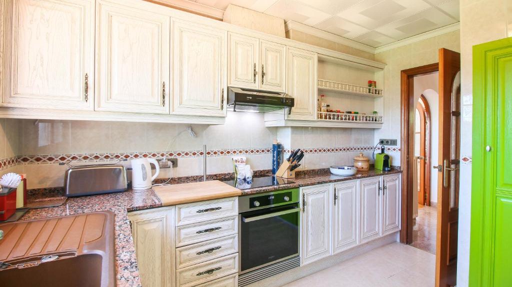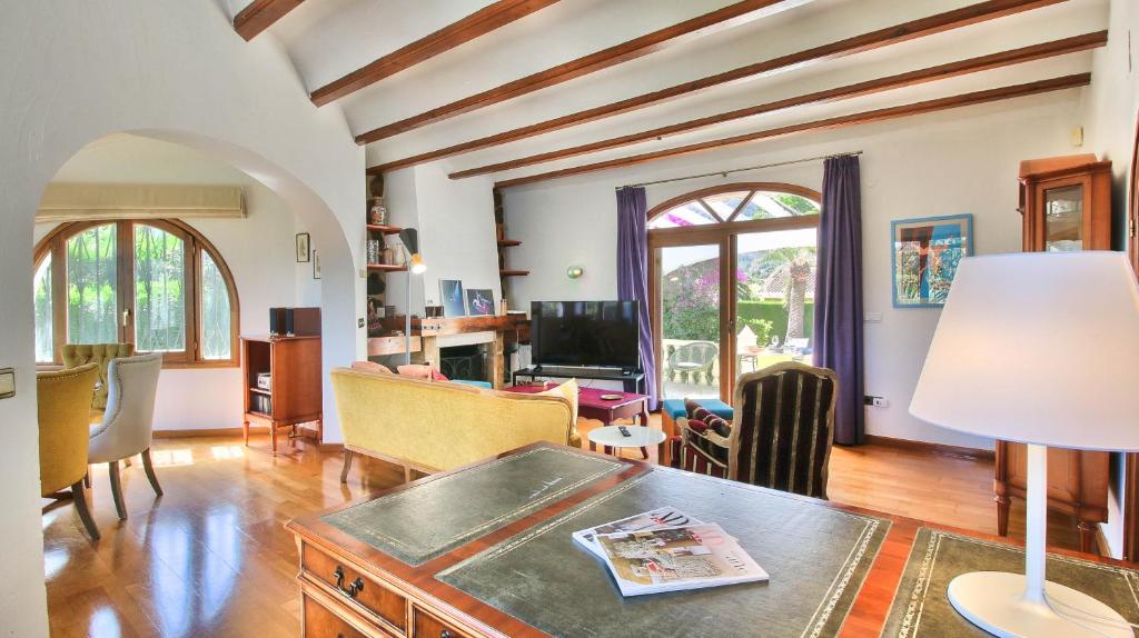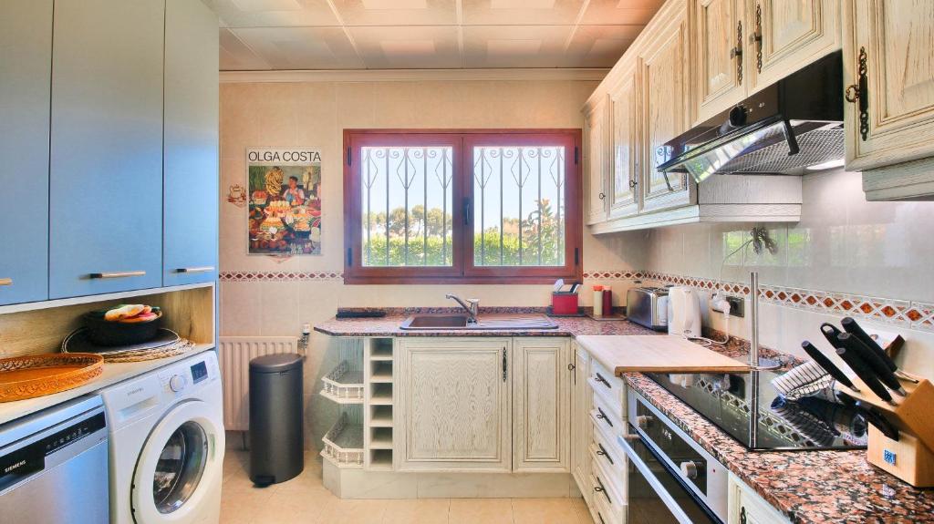 Neben den Freiterrassen verfügt das 150 qm grosse Ferienhaus über eine möblierte Terrasse, ein großzügiges Wohn-Esszimmer mit Klimaanlage, SAT-TV (UHD-Fernseher mit Internetverbindung, 55 Zoll), Soundsystem mit Bluetooth und CD-Unterstützung und Glasfaser-Internetanschluss per WLAN , Küche mit Geschirrspülmaschine, Herd mit Ceranfeld, Backofen, Mikrowelle, Kühl-Gefrierkombination, Kaffeemaschine und Toaster. Auch eine Waschmaschine, Bügelbrett und Bügeleisen gehören zur umfangreichen Ausstattung. die drei Doppelschlafzimmern sind mit einer Klimaanlage ausgestattet. Zwei Badezimmer mit Dusche und WC stehen bereit.