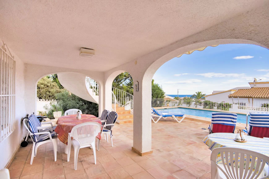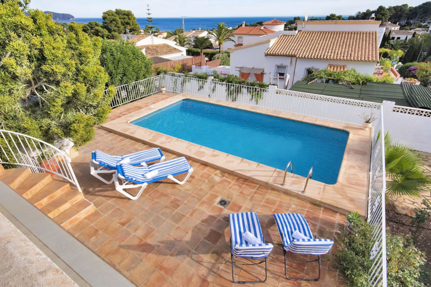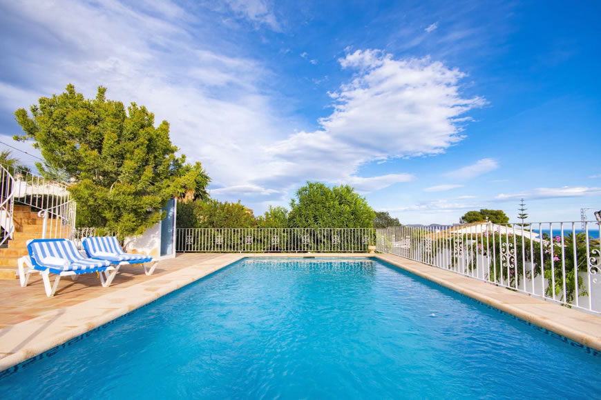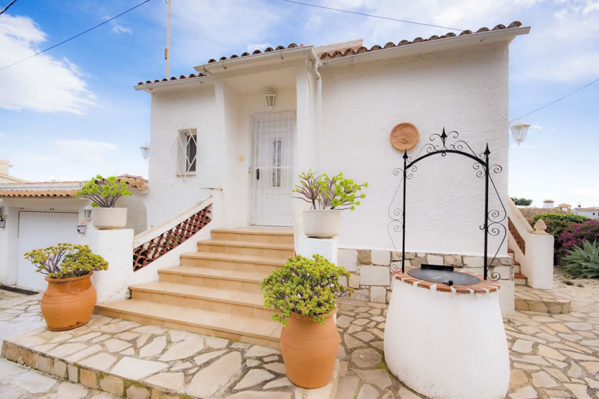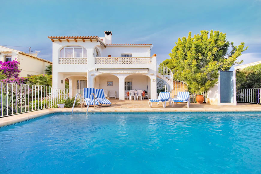 Ferienhaus in Calpe an der Costa Blanca nahe der Badebucht La Fustera an der Küste von Benissa mit Privatpool, Klimaanlage und Internetanschluss