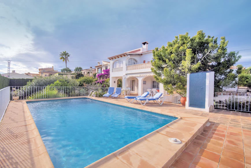 Das freistehende Ferienhaus Sol de Costa mit grossem Privatpool liegt nur 1.000 Meter von der schönen Badebucht La Fustera entfernt auf einem abgeschlossenem Privatgrundstück mit Garage und Parkplatz innerhalb des Grundstücks. Vier Sonnenliegen, eine Sitzgruppe und ein Sonnenschirm stehen auf der großzügigen Poolterrasse bereit. Auch eine gemauerte Aussendusche ist vorhanden. Der gesamte Wohnbereich erstreckt sich über die obere Etage des Hauses, die untere Etage ist verschlossen und garantiert unbewohnt, so dass Ihnen das gesamte Anwesen zur alleinigen Verfügung steht. Einkaufsmöglichkeiten finden Sie zu Fuß nur 9 Minuten (700 Meter) entfernt. Dort können Sie morgens frische Backwaren für ein ausgiebiges Frühstück einkaufen und finden auch alles für einen gemütlichen Grillabend. Ein Barbecue Grill steht Ihnen auf der Poolterrasse zur Verfügung. Eine Badebucht mit Sandstrand und Restaurant sowie Cocktail-Bar erreichen Sie zu Fuß in 13 Minuten oder mit dem Auto in 3 Minuten (ca. 1 km). Der große Sandstrand von Calpe mit zahlreichen Restaurants und schöner Promenade ist nur 2,7 Km entfernt (7 Autominuten). Die romantische Fischerstadt Moraira ist einen Besuch wert und kann mit dem Auto in nur 15 Minuten erreicht werden (8,7 Km). Besuchen Sie auf dem Weg dorthin auch die schönen Badebuchten entlang der eindrucksvollen Panaramastrasse entlang der Küste.