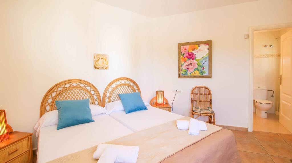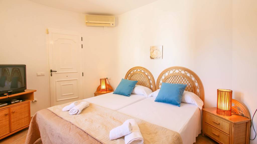 Das Ferienhaus ist unterteilt in ein Wohn-Esszimmer mit Klimaanlage, SAT-TV, Internetanschluss per WLAN und Ausgang zur möblierten Panoramaterrasse. Die offene Einbauküche ist ausgestattet mit einem Herd mit Backofen, Geschirrspülmaschine, Waschmaschine, Kühl-Gefrierkombination, Kaffeemaschine und Toaster. Auch ein Bügeleisen und Bügelbrett sind vorhanden. Die 3 Doppelschlafzimmer sind mit einer Klimaanlage ausgestattet. 2 Badezimmer stehen für Sie bereit. Ein Bad verfügt über eine Badewanne und WC. Das zweite Bad ist mit einer Dusche und WC ausgestattet.