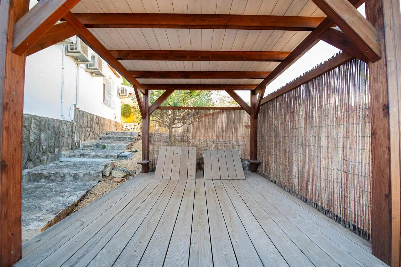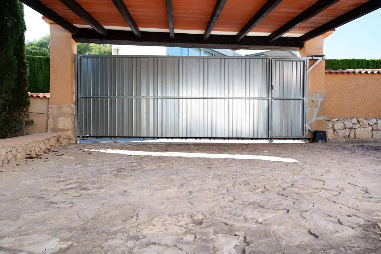 Ein überdachter Autoabstellplatz steht Ihnen auf dem Grundstück zur Verfügung. Restaurants und Bars sowie das Stadtzentrum von Moraira befinden sich in ca. 6 Km Entfernung, zum Meer sind es ca. 2 Km.