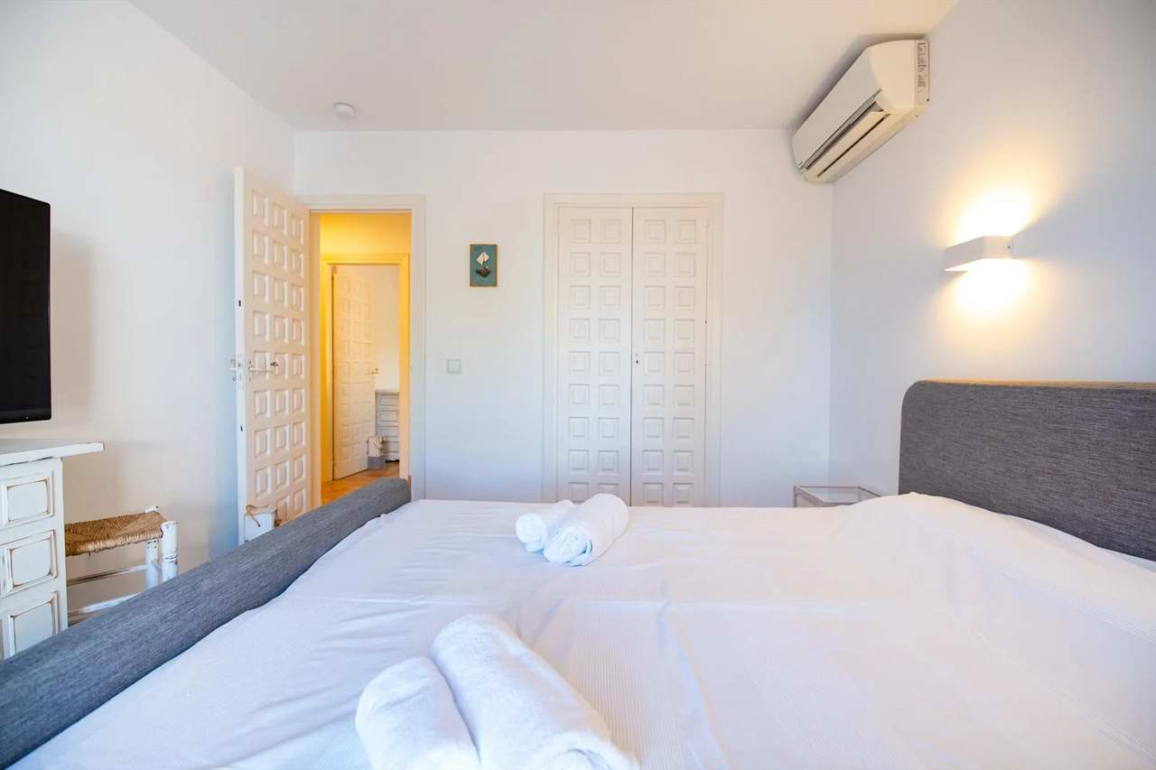 - Schlafzimmer mit Klimaanlage, Doppelbett (zwei Einzelmatratzen)